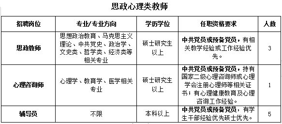 1. 学校实行聘任制,引进人员首个聘期一般为三年,政治面貌是中共预备党员/党员,其党组织关系需转至我校。